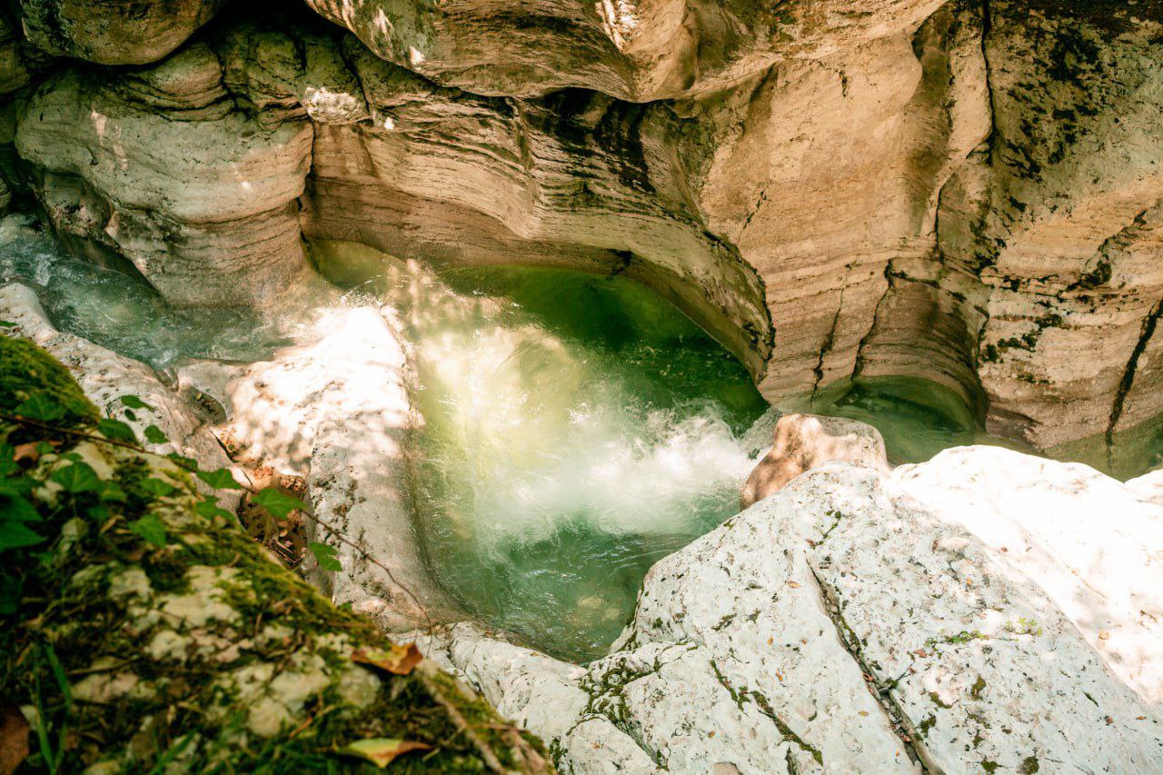 • Каньон Белые скалы — мраморные скалы и бирюзовая река Хоста создают завораживающий контраст.